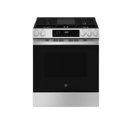 GE 30 in. 5-Burners Slide-In Smart Gas Convection Range in Stainless with EasyWash Oven Tray And No-Preheat Air Fry
